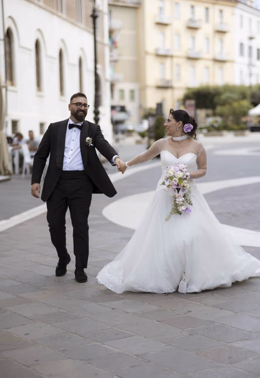 La consegna segna il culmine del percorso. Ogni dettaglio viene controllato con attenzione per garantire armonia e perfezione assoluta. Se necessario, l’abito torna in sartoria per gli ultimi ritocchi. Il servizio è disponibile a domicilio, in Italia e nel mondo, oppure nella nostra sartoria di Benevento.